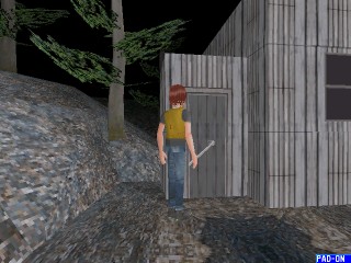 ![]() 少し進むとそこには小屋の勝手口が… この先には何が…? |